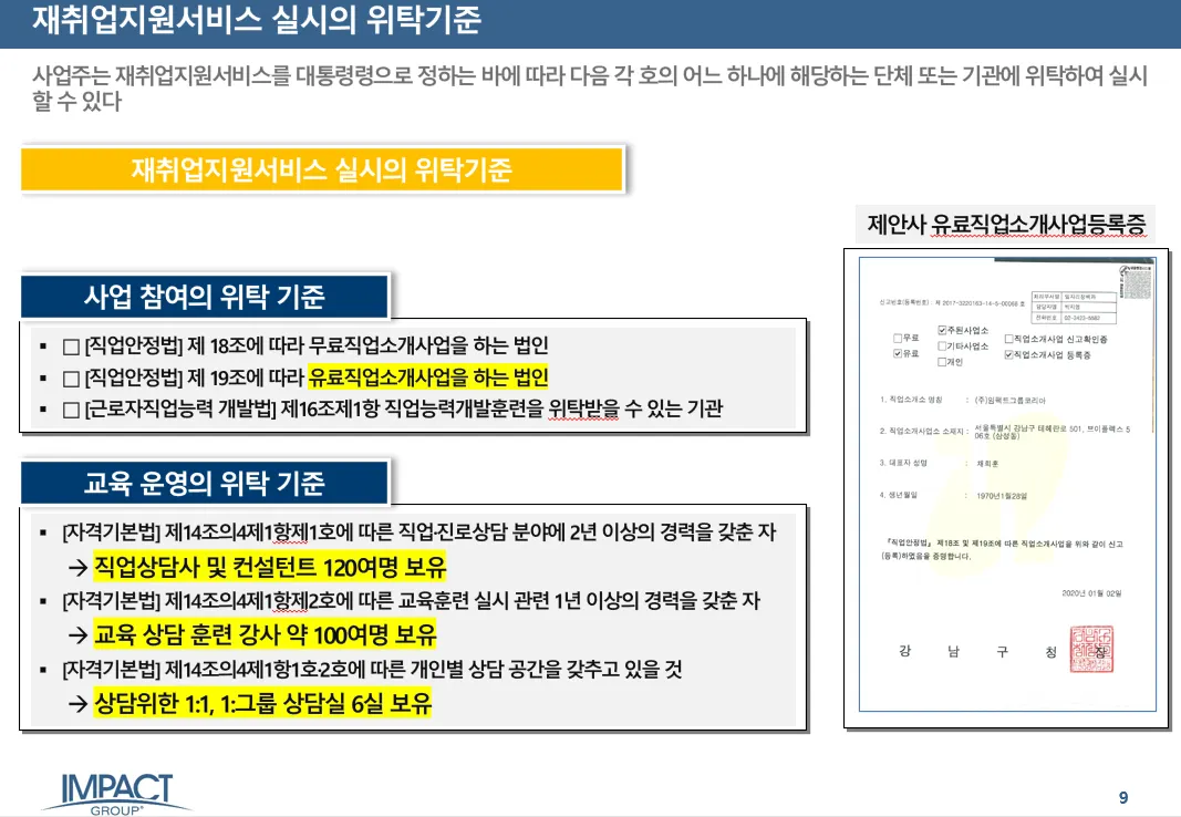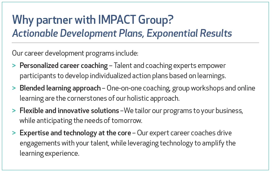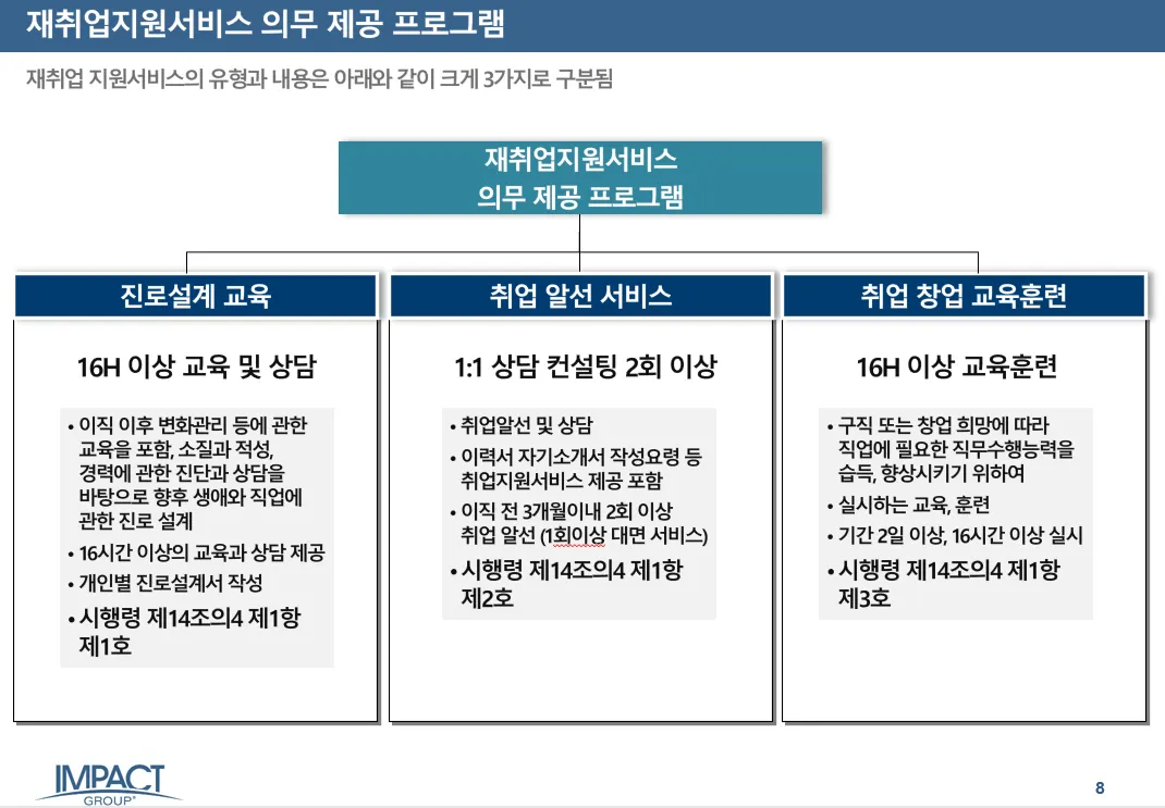 IMPACT Group은 전 세계 71개국 200개 지점으로 구성된 글로벌 HR 및 전직지원 서비스 제공 기관으로, 한국에서도 글로벌 기업 수준의 전직지원 및 HRD 서비스를 제공합니다