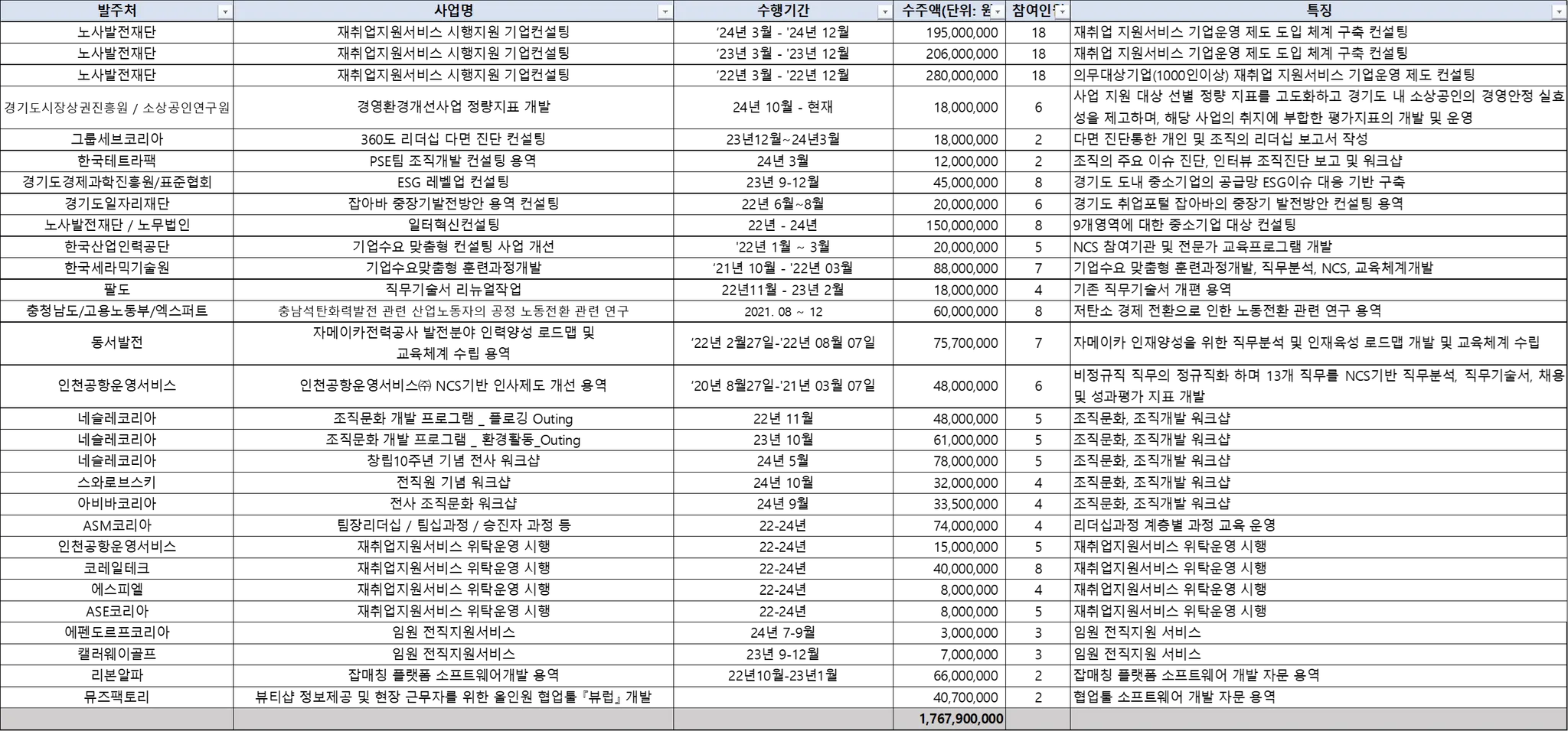 주요 내용: 비정규직 직무의 정규직화 및 13개 직무의 NCS 기반 직무분석, 채용 및 성과평가 지표 개발.