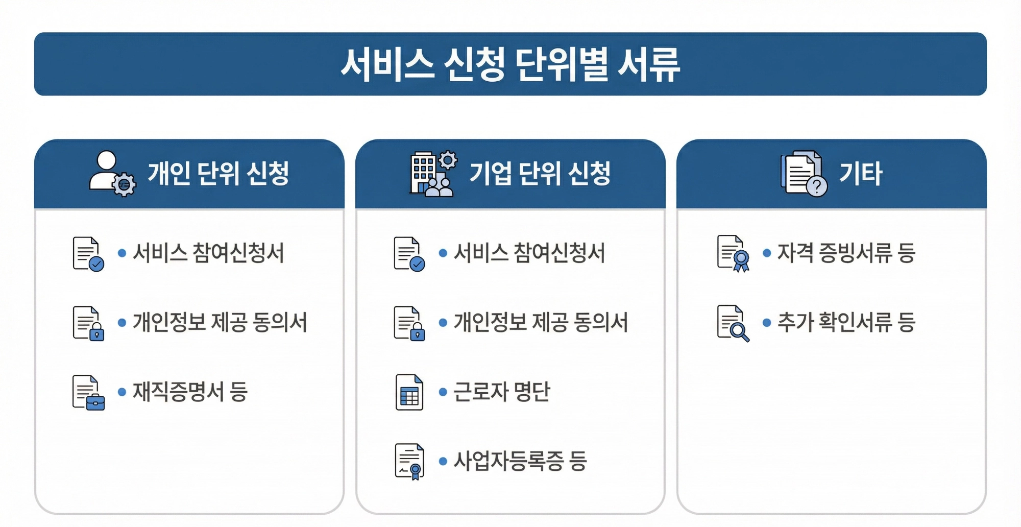 복잡한 준비의 부담은 줄이고, 필요한 지원은 더 체계적으로 시작해보세요.
