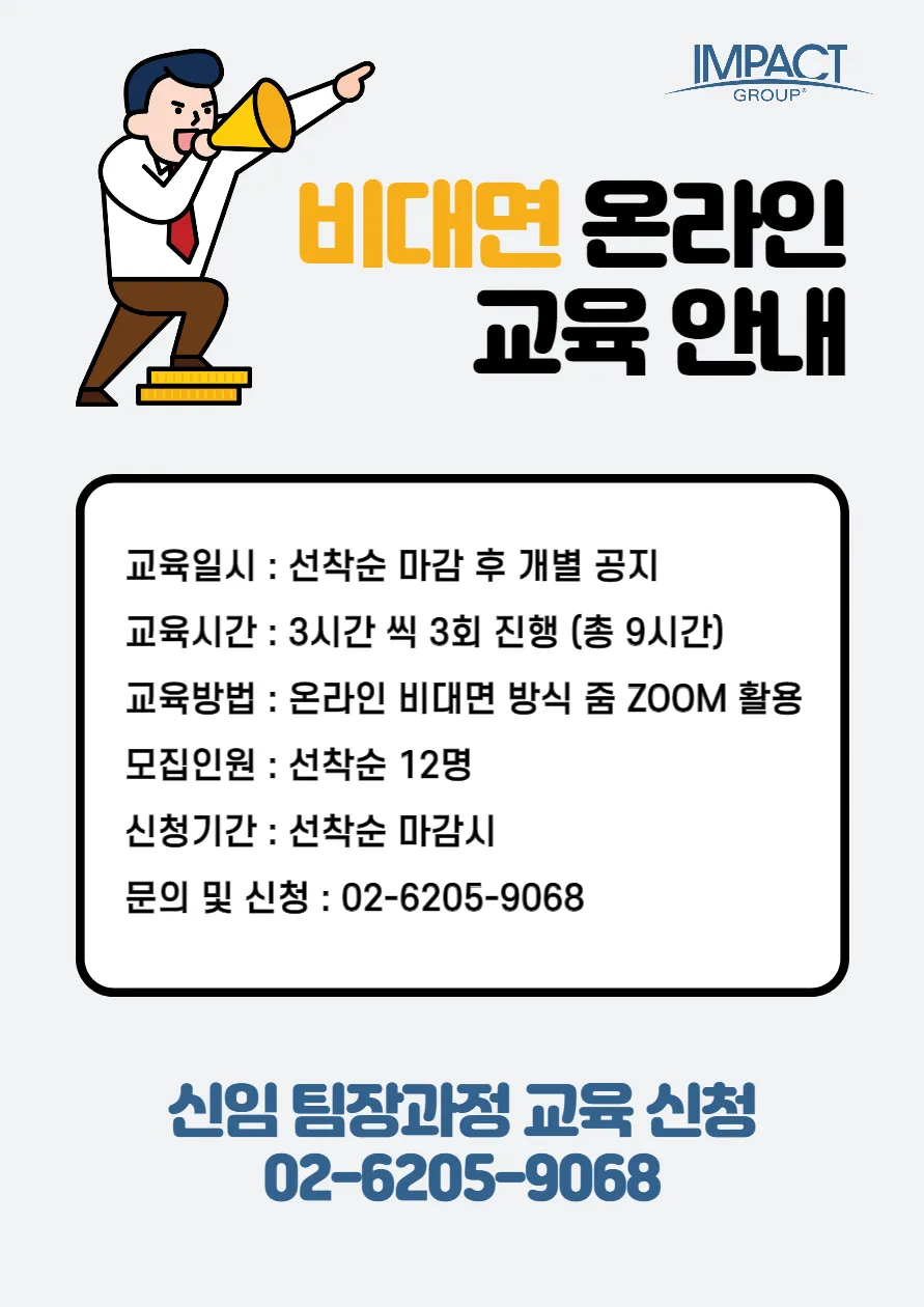신청접수 : 전화신청 02-6205-9068 / 이메일 문의 hhchai@impactgroup.co.kr
